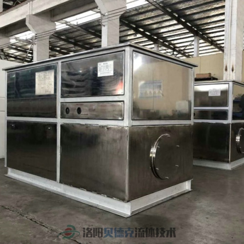 (4)要防油溫過高。液壓站系統(tǒng)的油溫以保持15-50℃為適宜。油溫過高會帶來系列不良后果。油溫上升會使油液變稀,泄漏增加,系統(tǒng)率下降。油液在較高溫度下工作,容易變質(zhì)。要避免油溫過高,除了在設(shè)計采取避免油液發(fā)熱的措施(如油泵卸荷及對于大功率系統(tǒng)采用容積調(diào)速的方法等)外,還要考慮油箱是否有足夠的散熱能力。必要時,可增設(shè)冷卻裝置。